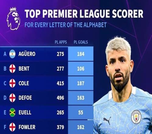 北京时间10月17日,德转依照球员姓氏首字母列出了英超历史进球数最多的26名球员,阿圭罗、杰拉德、亨利、热苏斯...