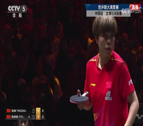 孙颖莎43战胜队友王艺迪,晋级中国大满贯女单四强 懂球帝 2025-10-04 01:37:11 10月3日,WTT中国大满贯女单1/4决赛,孙颖莎4-3(14-12、4-11、11-6、7-11、12-14、11-3、11-8)战胜队友王艺迪,晋级四强。孙颖莎半决赛的对手是陈幸同和朱雨玲之间的胜者。 上一篇: 德约科维奇:儿子坚持要和我一起来中国,但他必须上学下一篇: 中网再现“上帝之手”抓马!阿尼西莫娃用赢球避免悲剧重演!