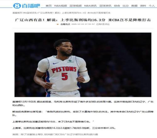根据解说段冉在社交平台透露:“身陷风波的比斯利,受到了大量海外球队的关注。其中有来自CBA的辽宁广东山西等队。上赛季比斯利在活塞还能场均16分,来了CBA岂不是降维打击。”另有消息说,欧洲联赛的贝尔格莱游击、皇家马德里和拜仁慕尼黑等,对比斯利也充满兴趣。
